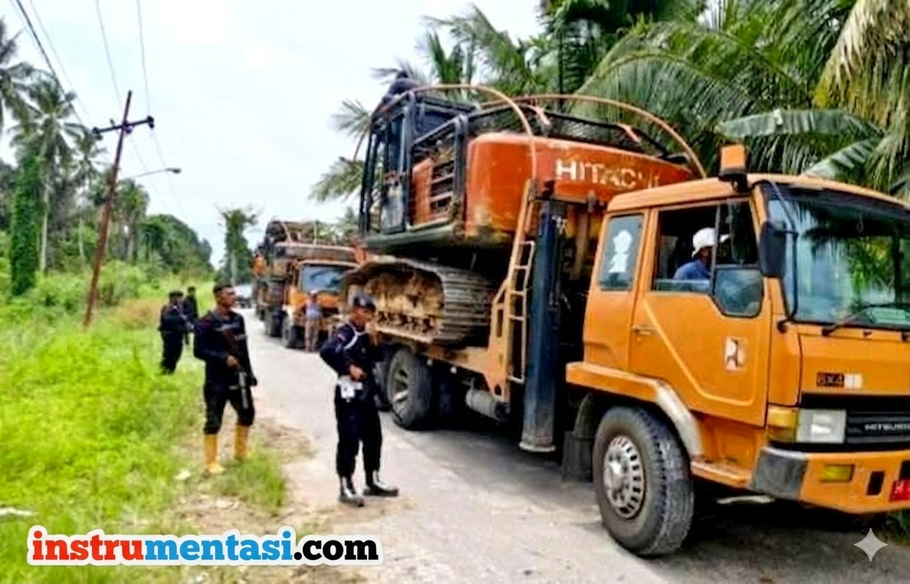 Sumut, Instrumentasi.com – Personil Brimob dan Polda Sumut evakuasi ekskavator dari tambang emas ilegal di Tapanuli Selatan dan Mandailing Natal.