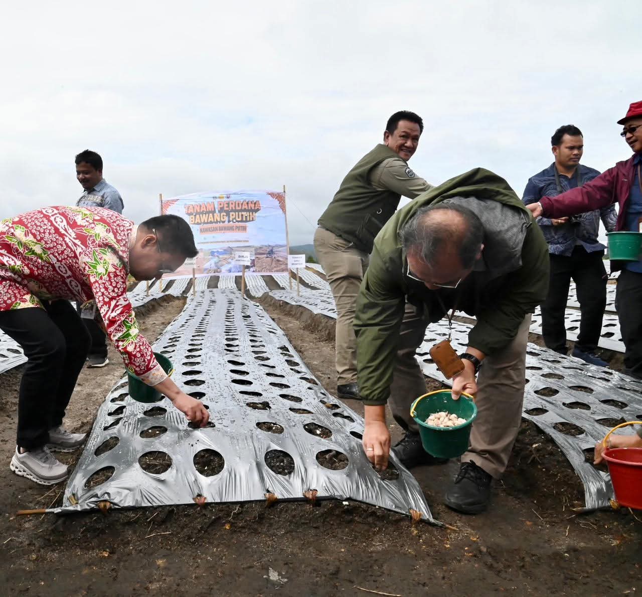 Humbahas, Instrumentasi.com-Bupati Humbang Hasundutan Oloan Paniaran Nababan bersama Plt Direktur Jenderal Hortikultura Kementerian Pertanian RI Hotman Fajar Simanjuntak melaksanakan penanaman perdana pengembangan bawang putih seluas 20 hektare di kawasan Food Estate Desa Ria-Ria Kecamatan Pollung, Kamis (20/11/ 2025).