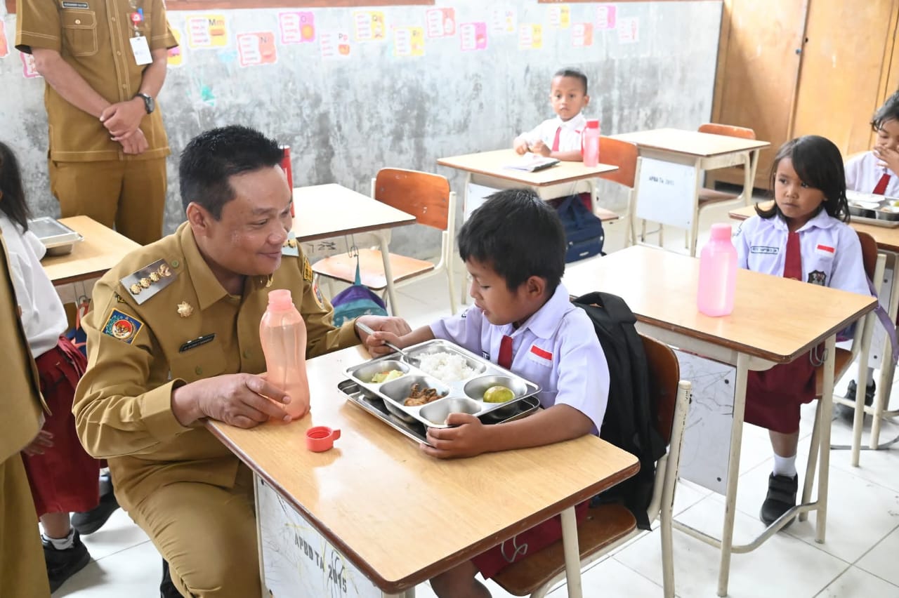 Kehadiran Bupati Humbang Hasundutan dan rombongan disana termasuk para Kepala Desa untuk memastikan pelayanan pemberian MBG kepada anak-anak sekolah.