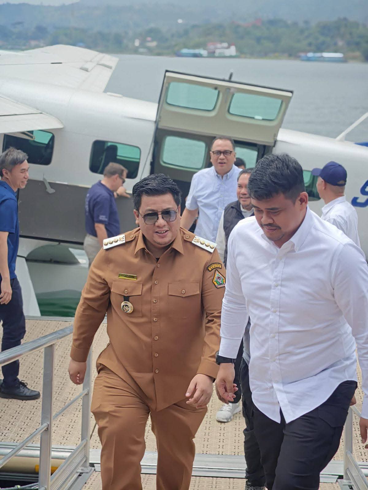 Samosir, Instrumentasi.com – Gubernur Sumatera Utara (Sumut) Muhamamd Bobby Afif Nasution bersama Bupati Samosir Vandiko T Gultom dan Bupati Pakpak Barat Frans Bernard Tumanggor mencoba ujicoba penerbangan perdana pesawat Amfibi dari Bandara Silangit, menuju Pelabuhan Mariana Resort Tuktuk Siadong, Kec. Simanindo, Senin (22/9/2025).