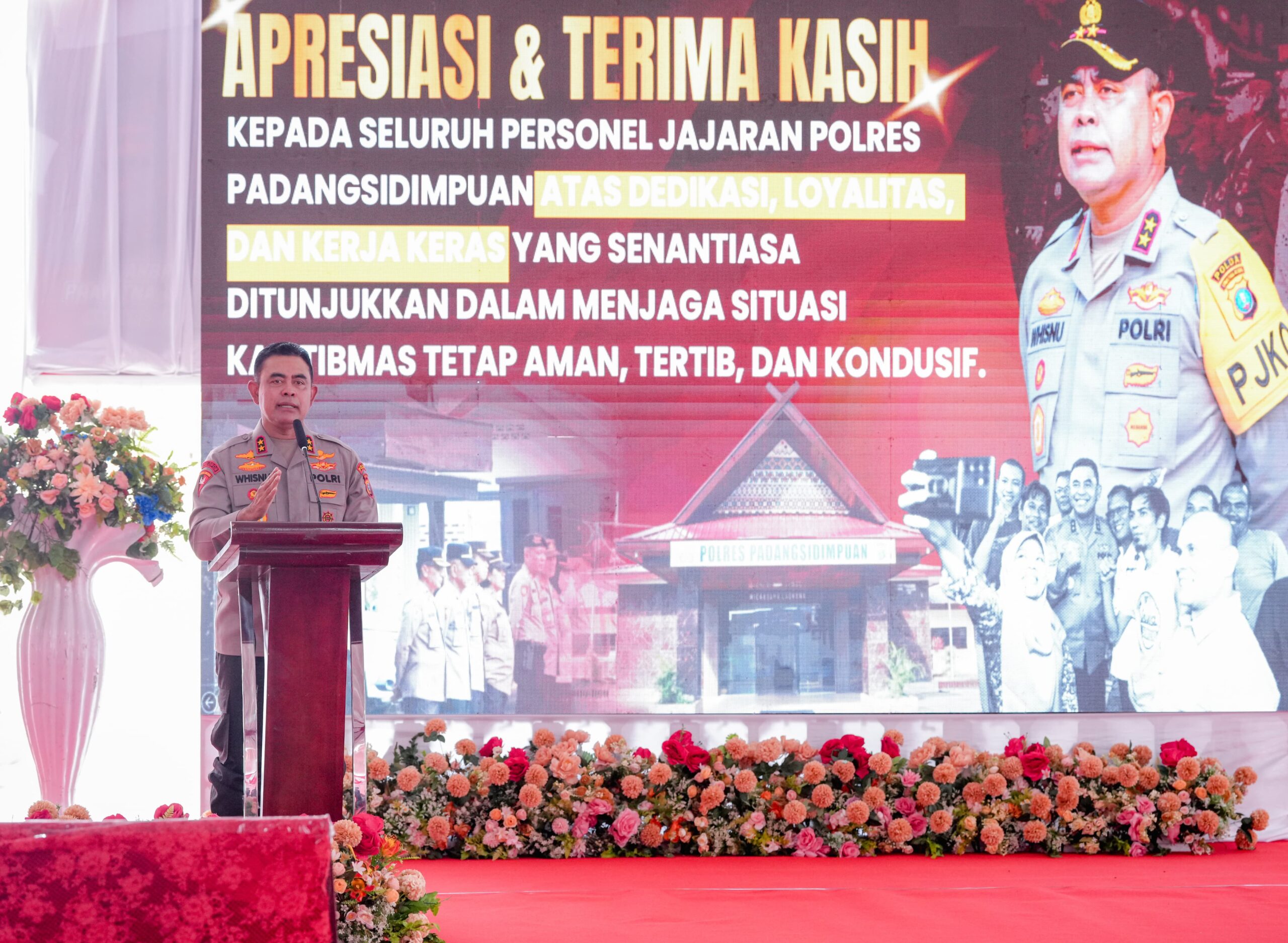 “Polres Padangsidimpuan memiliki peran vital sebagai garda terdepan Polri. Tugas kita bukan hanya menegakkan hukum, tetapi juga hadir di tengah masyarakat sebagai pelindung, pengayom, dan pelayan dengan hati,” tegas Kapolda.