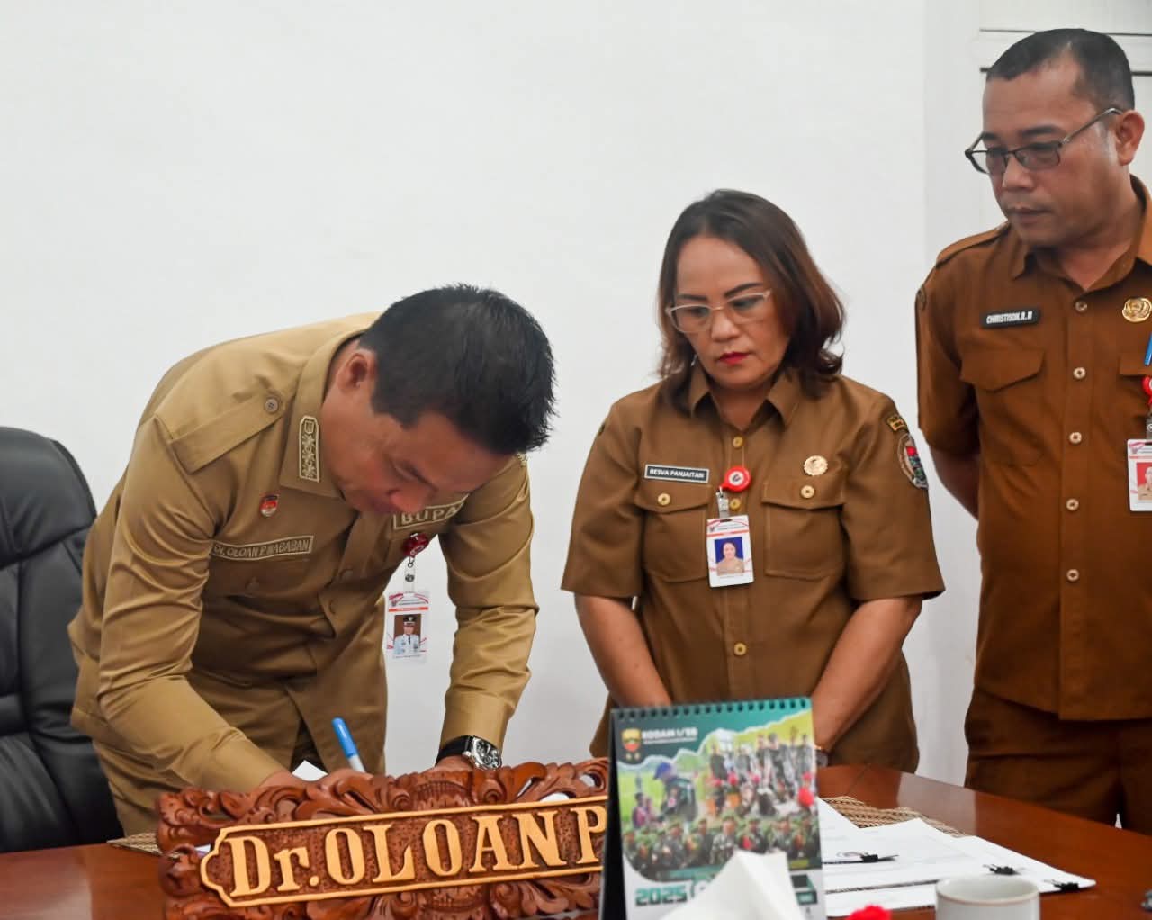 Naskah perjanjian hibah barang milik negara ditandatangani oleh Bupati Humbahas, Oloan Paniaran Nababan, bersama Novinerliana MT selaku perwakilan Balai Besar Pelaksanaan Jalan Nasional Sumatera Utara.