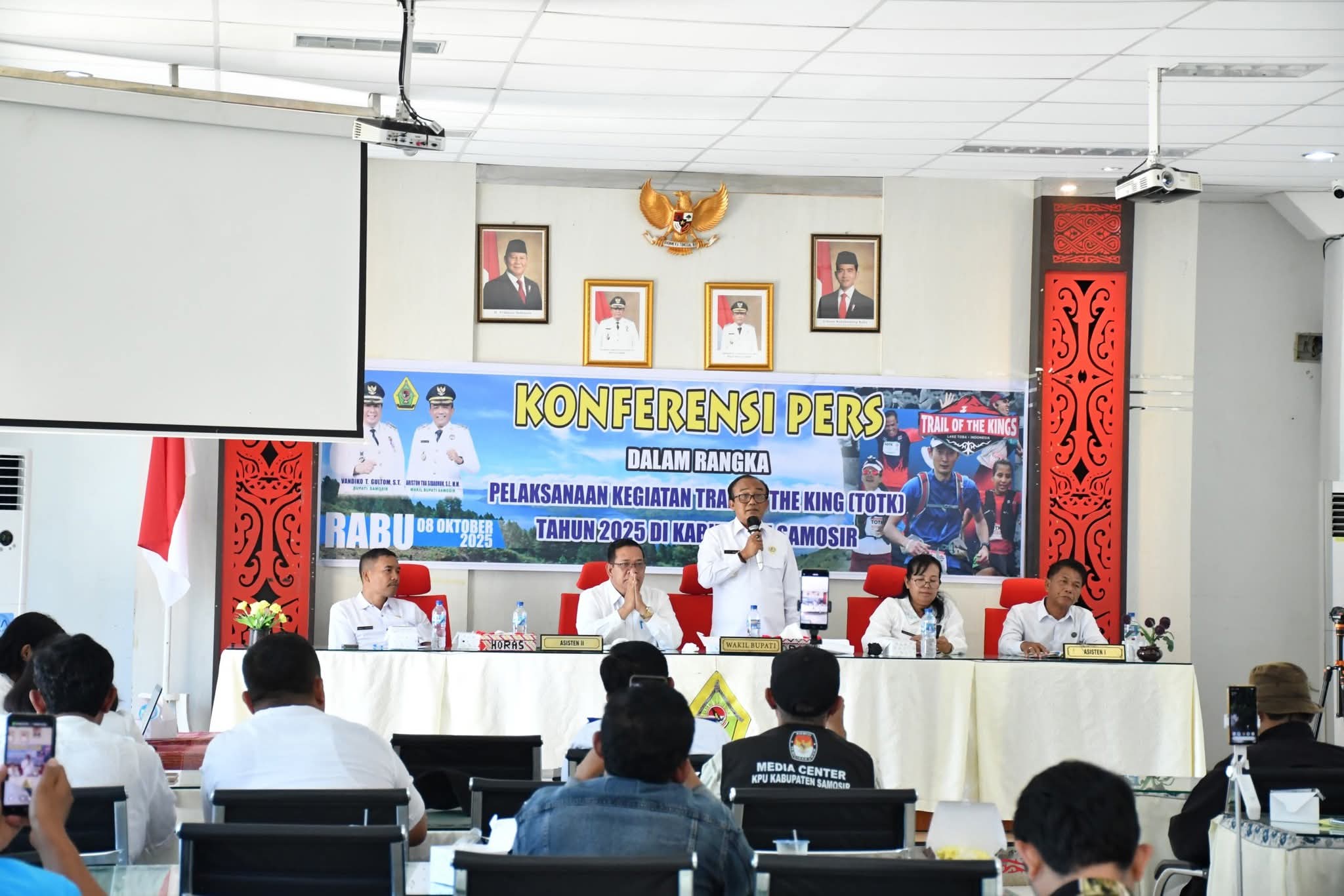 Samosir, Instrumentasi.com – Pemerintah Kabupaten Samosir melalui Dinas Komunikasi dan Informatika menggelar Temu Pers Trail Of The King (TOTK) by UTMB dengan wartawan/jurnalis yang bertugas di Wilayah Samosir. Kegiatan yang bertujuan untuk menjalin silaturahmi dan menyampaikan berbagai informasi penting yang berkaitan dengan TOTK dipimpin Wakil Bupati Samosir Ariston Tua Sidauruk di Aula Kantor Bupati Samosir, 08/10.