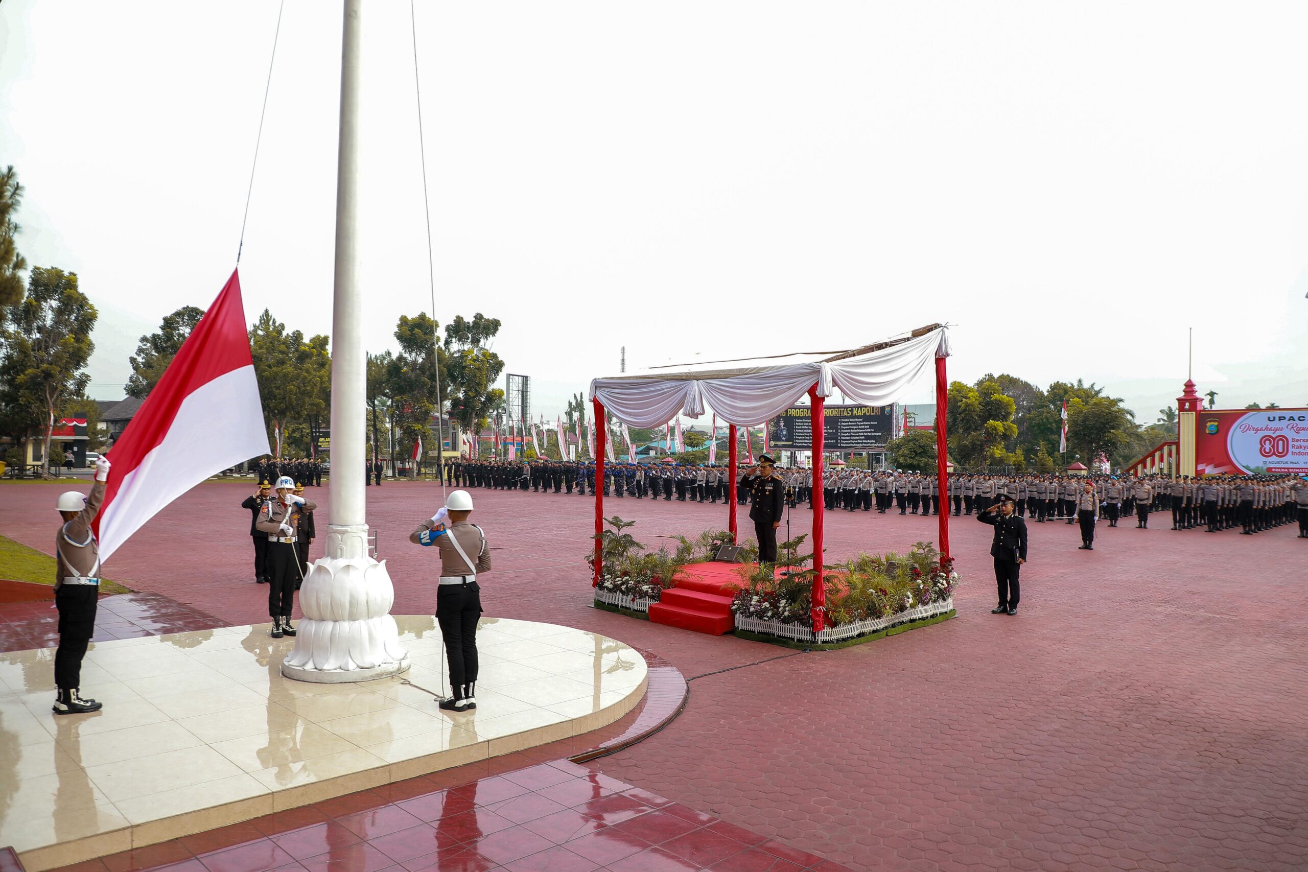 Medan, Instrumentasi.com – Kepolisian Daerah Sumatera Utara (Polda Sumut) melaksanakan Upacara Peringatan Hari Ulang Tahun (HUT) Kemerdekaan Republik Indonesia ke-80 di Lapangan KS Tubun Mapolda Sumut, Minggu (17/8/2025) pagi.
