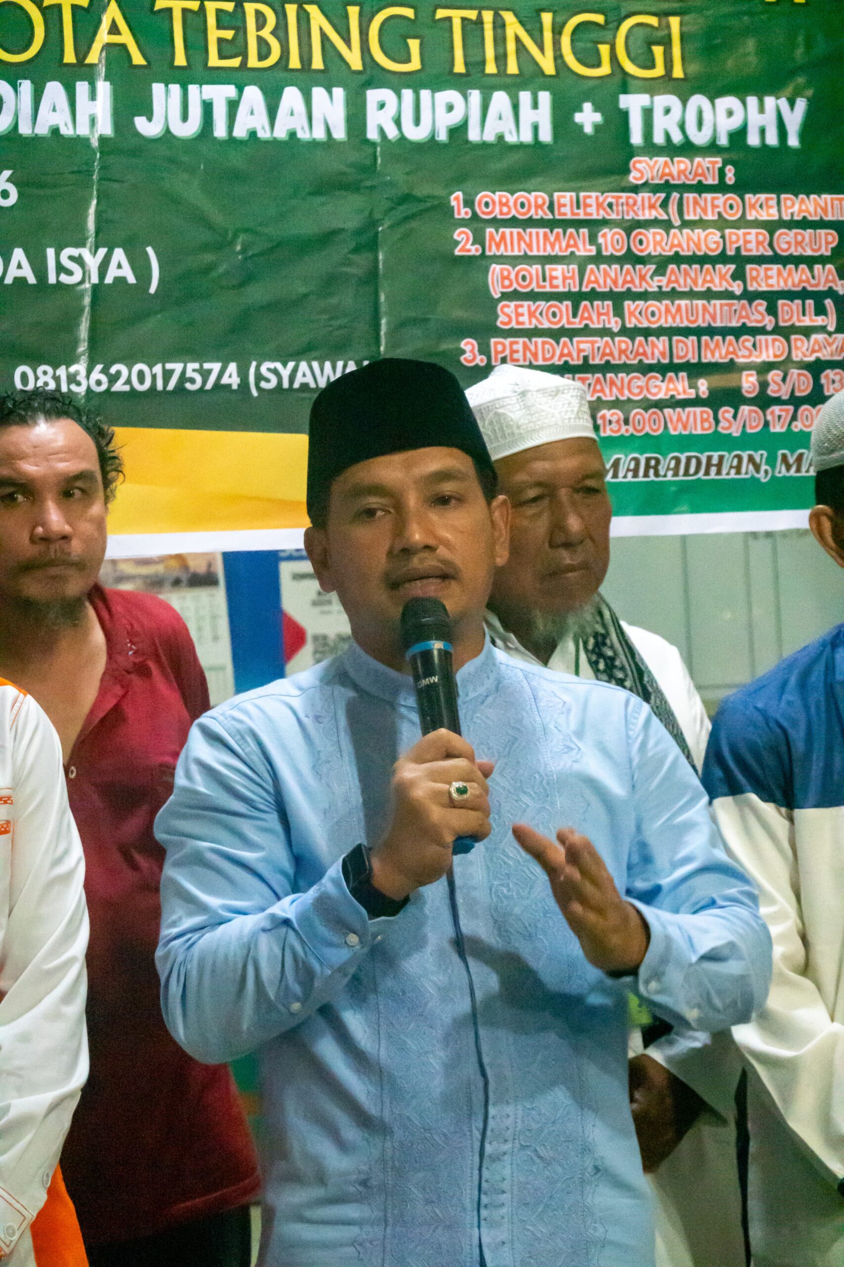 “Kita akan menyambut bulan suci Ramadhan 1447 Hijriah tahun 2026. Ini yang harus kita manfaatkan, momentum bulan suci Ramadhan. Mari bersama kita jaga ukhuwah Islamiyah, tingkatkan keimanan dan ketakwaan kita,” kata wali kota dalam sambutan acara Pawai Obor Sambut Ramadhan 1447 Hijriah Kota Tebing Tinggi, Minggu malam (15/02/2026) di Masjid Raya Nur Addin, Jln. MT. Haryono No. 126.
